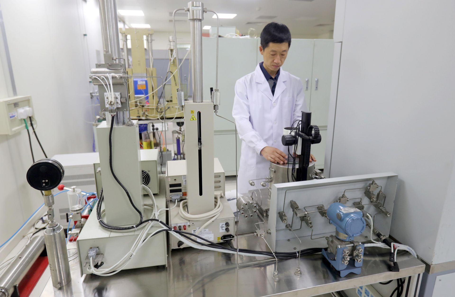大慶油田勘探開發(fā)研究院的科研人員在進行油井鉆探相關(guān)實驗。