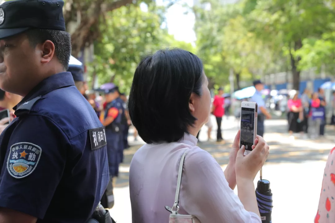 與往年不一樣,今年高考雖無風(fēng)雨,但是酷暑難耐,近500名送考家長已經(jīng)在校門外站了2個多小時了。隨著離考試結(jié)束時間越來越近,原本還平靜的人群漸漸開始騷動起來。為了緩解家長們焦慮的心情,林志強跟家長們建議,“一會兒學(xué)生們考完試出來咱們給他們鼓鼓掌!”“好!”林志強的建議立馬得到了家長們的贊同。