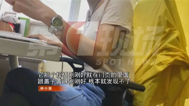 ↑廁所門與擋板由合頁連接,而針孔攝像頭則剛好暗藏于廁所門最下面的合頁內(nèi)。如果不仔細看,很難發(fā)現(xiàn)。