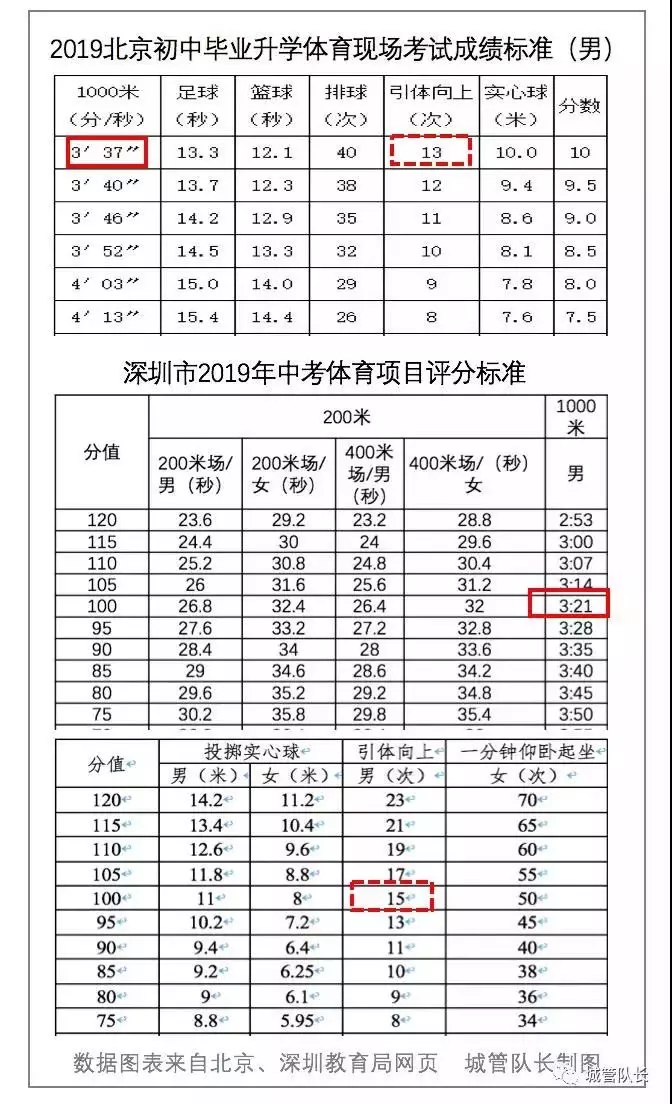 體育成績(jī),男子1000米跑,北京滿(mǎn)分3分37秒,上海滿(mǎn)分3分34秒,廣州滿(mǎn)分3分45秒,而深圳滿(mǎn)分3分21秒,且深圳中考體育占總分比更高。意味著,如果后面跟著一只大老虎,深圳的孩子要比北京的孩子跑快16秒才能不被老虎吃掉。其他項(xiàng)目基本上對(duì)深圳的孩子要求更高,比如引體向上,深圳孩子滿(mǎn)分15個(gè),北京孩子滿(mǎn)分13個(gè),上海孩子滿(mǎn)分11個(gè)。網(wǎng)友:憑什么咱的力氣要更大……