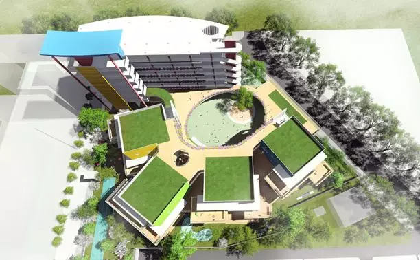 室外環(huán)境設(shè)有滿(mǎn)足孩子們的橡膠跑道、人工草坪,大型娛樂(lè)滑梯設(shè)施等等,各層也設(shè)置了公共平臺(tái),為幼兒提供多樣化的樂(lè)趣,滿(mǎn)足幼兒好奇、好動(dòng)、好模仿的特點(diǎn)。在屋頂設(shè)置了綠植與小型趣味玩具區(qū),讓幼兒接觸自然,喜歡自然。