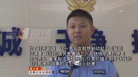 民警表示當(dāng)時(shí)為了向居民推銷(xiāo),這兩名所謂的工作人員隨身攜帶了工作證件,然后出具了押金單,同時(shí)還進(jìn)行了居民登記。