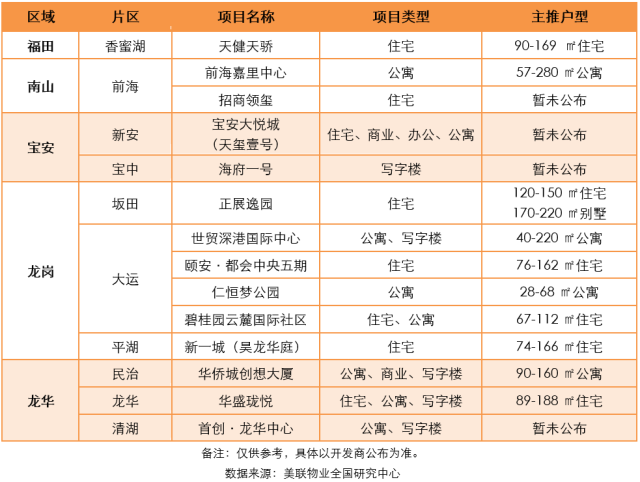 深圳市8月份入市項(xiàng)目預(yù)測列表