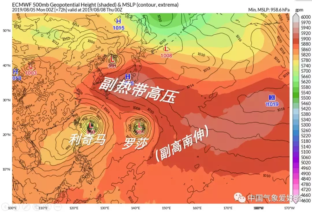 羅莎臺風(fēng)將會是一個(gè)又大又強(qiáng)的臺風(fēng)。由于個(gè)頭太大,副高壓不住,所以它不會來我國,最大可能是緩慢北上登陸日本。不過,羅莎將會阻止副高在利奇馬南側(cè)西伸,并且對利奇馬有互斥作用,是利奇馬臺風(fēng)的“導(dǎo)演”之一??傮w看來,羅莎將會對利奇馬施加向西的作用力,促使利奇馬更靠近我國。