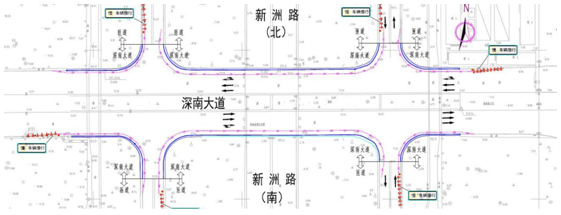 二、區(qū)域二(深南新洲立交A-D匝道、深南轉(zhuǎn)各匝道路段,施工時段為2019年8月-2020年1月,預(yù)計143天)
