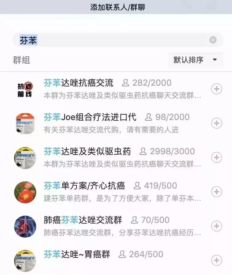芬苯達(dá)唑(俗稱“狗藥”)關(guān)于芬苯達(dá)唑的QQ群也越來(lái)越大,人數(shù)少則幾百多則上千。