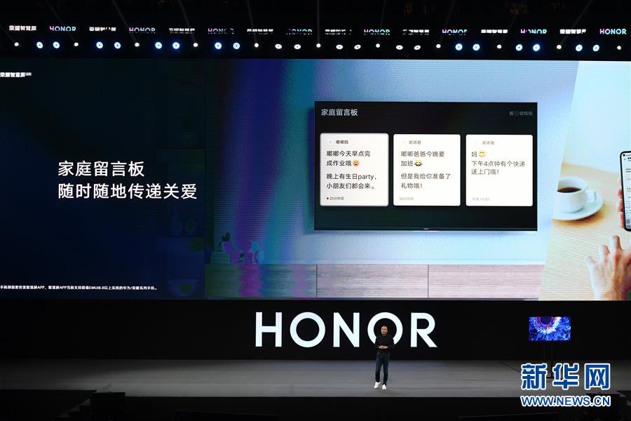 8月10日,華為榮耀總裁趙明在發(fā)布會(huì)上介紹榮耀智慧屏。新華社記者梁旭攝