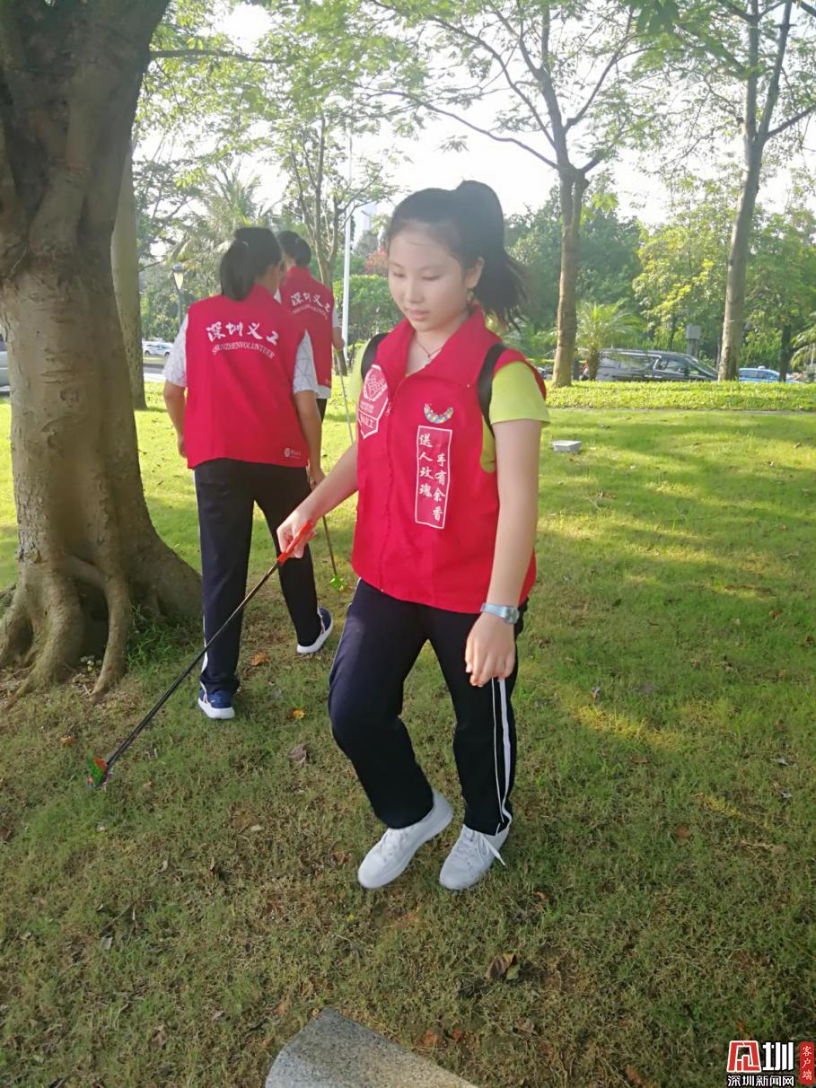 又走了兩圈,待我們的垃圾袋已經(jīng)“物”滿為患時,我們放下工具,結束本次活動??粗晃覀兓厥盏囊淮倏纯唇?jīng)我們“美容”過后的地方,我們擦擦汗,會心地笑了。再看看那充滿笑臉的家長和義工叔叔阿姨時,不由得一陣感慨:這里的義工,真是深圳最美麗的一群人。他們沒有報酬,卻堅持初心,一味地付出,不計回報。他們的精神就如義工服上“贈人玫瑰,手有余香”的幾個字一樣。雖不是流芳千古,卻藏在深圳的一花一草一樹一木里。他們的步子,無數(shù)次踏在那被烈日曬得滾燙的石子路上;他們的手,也一次次撿起垃圾。他們有著自己的工作事業(yè),卻在百忙之中抽出空隙,為美麗的深圳貢獻出自己的一份力量,他們用自己的愛與善良,譜寫了一篇又一篇的“美麗詩篇”,他們用自己的行動,感染了身邊的人群,所以深圳的義工隊伍也越來越大。