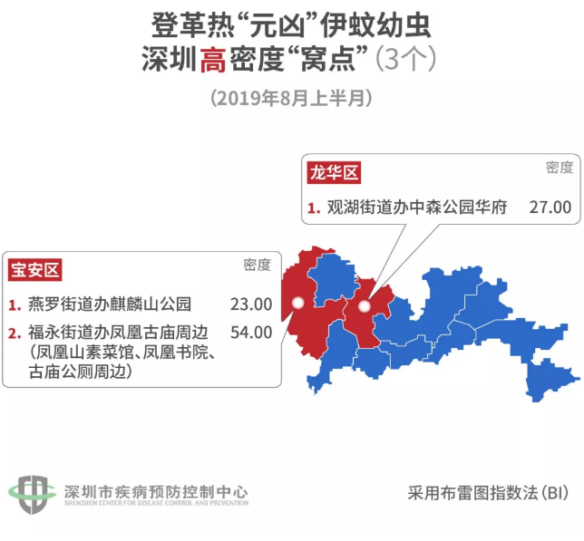 2019年8月1日-15日,通過對全市419個監(jiān)測點進(jìn)行伊蚊密度監(jiān)測,發(fā)現(xiàn)深圳蚊媒密度總體較高,不符合防控要求的監(jiān)測點有237個,占了56.56%,其中——高傳播風(fēng)險的有3個點;中度傳播風(fēng)險的有64個點;低度傳播風(fēng)險的有179個。
