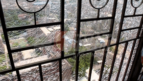 經(jīng)過現(xiàn)場測量,這個兒童房的落地窗長約1.7米,寬約1.8米,樓下是一條小路,正對著一所幼兒園和一所小學,如果玻璃完全爆裂,后果不堪設想。