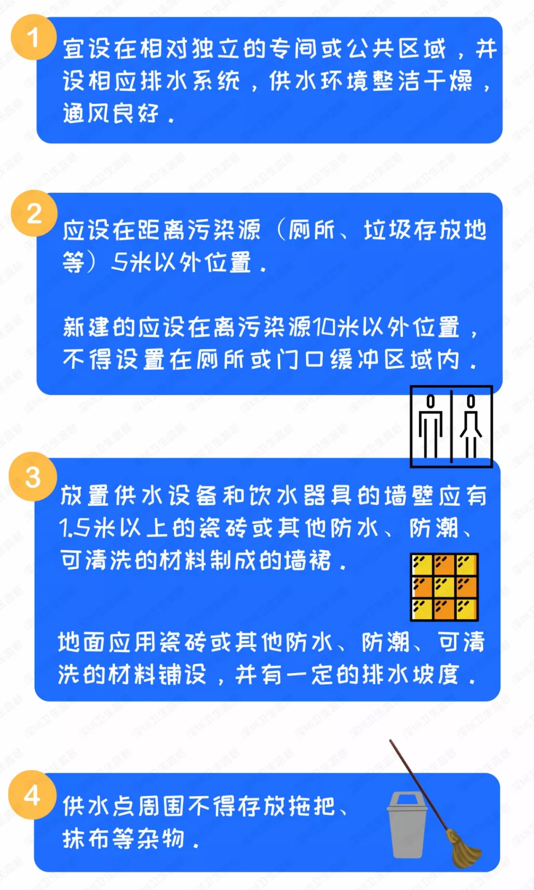 供水點(diǎn)指經(jīng)各種供水設(shè)備處理后可供師生直接飲用的產(chǎn)品水出水設(shè)備(水嘴)的存放地方。