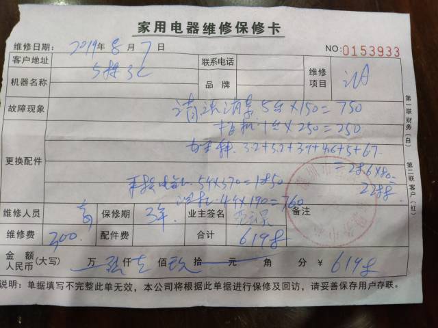 藍先生的妹妹在58同城小助手,找到了深圳市易臣國際貨運代理有限公司,并預約了上門清洗空調的服務。當師傅上門以后,除了清洗外,還說空調存在多個問題,如需要加雪種(學名“氟利昂”)、線路老化、空調漏水等,6臺空調整體清洗加修理下來,藍小姐當天共花費6618元。