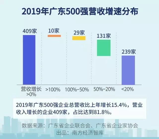 2019年入榜廣東民營100強(qiáng)企業(yè)中前10強(qiáng)的平均營業(yè)收入比上年增長24%。