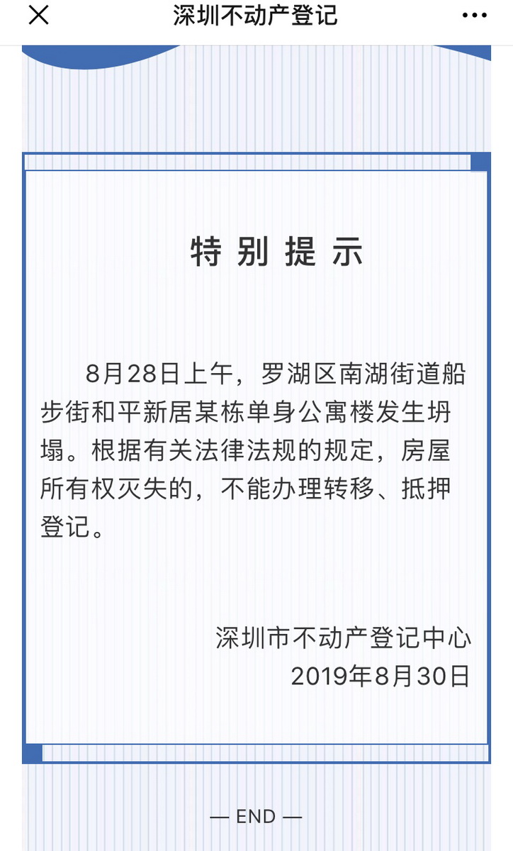 “拆遷已動(dòng)工”“拆遷物業(yè)”“房子倒了,坐等拆遷”……28日,羅湖區(qū)和平新居單身公寓樓發(fā)生沉降傾斜。還沒了解清楚事情真相,朋友圈就開始傳出該小區(qū)“房?jī)r(jià)暴漲”的消息。據(jù)媒體報(bào)道,事故發(fā)生后,購(gòu)房平臺(tái)顯示該公寓的房?jī)r(jià)暴漲高達(dá)100萬,連旁邊的鐵路小區(qū)也“沾了光”,坐地起價(jià),一套80多平的房子當(dāng)天猛漲30萬。