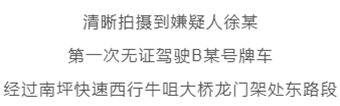 深圳交警立即展開(kāi)調(diào)查,于2019年8月27日清晰拍攝到嫌疑人徐某第一次無(wú)證駕駛B某號(hào)牌車,經(jīng)過(guò)南坪快速西行牛咀大橋龍門架處東路段。