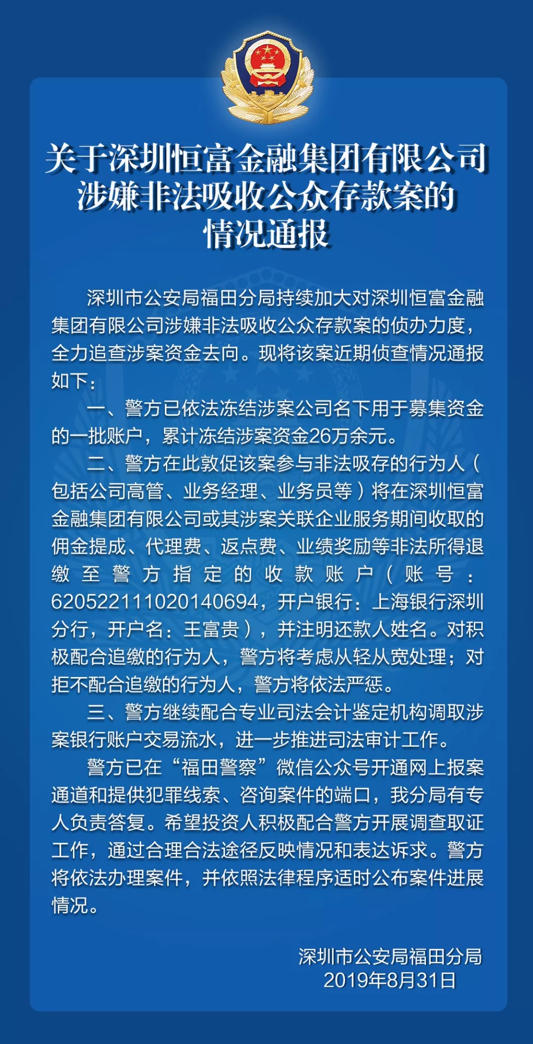 關(guān)于深圳恒富金融集團(tuán)、“小微金融”等平臺(tái)的案情通報(bào)