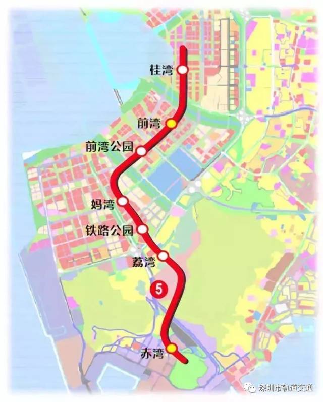 地鐵5號線南延線(即5號線二期工程),北起于5號線前海灣站,經(jīng)前海、南山,終點(diǎn)與地鐵2號線赤灣站換乘。