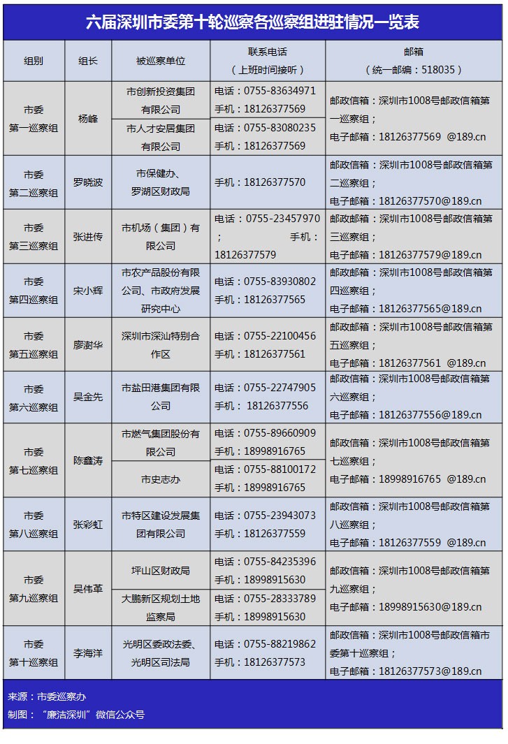 近日,根據(jù)深圳市委巡察工作部署,六屆市委第十輪巡察進(jìn)駐已全部完成,10個(gè)巡察組分別對(duì)市保健辦、市機(jī)場(chǎng)(集團(tuán))有限公司、市鹽田港集團(tuán)有限公司、市燃?xì)饧瘓F(tuán)股份有限公司、市農(nóng)產(chǎn)品股份有限公司、市特區(qū)建設(shè)發(fā)展集團(tuán)有限公司、市創(chuàng)新投資集團(tuán)有限公司、市人才安居集團(tuán)有限公司等8個(gè)單位黨組織開(kāi)展常規(guī)巡察,對(duì)深圳市深汕特別合作區(qū)和市史志辦開(kāi)展機(jī)動(dòng)式巡察,對(duì)市政府發(fā)展研究中心黨組開(kāi)展巡察“回頭看”;提級(jí)對(duì)光明區(qū)委政法委開(kāi)展掃黑除惡專項(xiàng)斗爭(zhēng)進(jìn)行專項(xiàng)巡察,對(duì)羅湖區(qū)財(cái)政局、坪山區(qū)財(cái)政局黨組開(kāi)展巡察“回頭看”,對(duì)光明區(qū)司法局、大鵬新區(qū)規(guī)劃土地監(jiān)察局黨組開(kāi)展機(jī)動(dòng)式巡察。