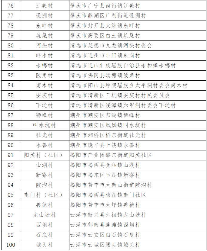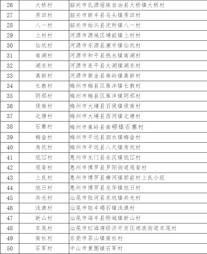 晶報(bào)2019年9月20日訊 據(jù)廣東省文化和旅游廳官方微信號(hào)消息,根據(jù)廣東省文化和旅游特色村認(rèn)定工作的有關(guān)要求,經(jīng)審核,現(xiàn)將各市認(rèn)定并推薦的擬公布為“廣東省文化和旅游特色村”100個(gè)村名單予以公示。