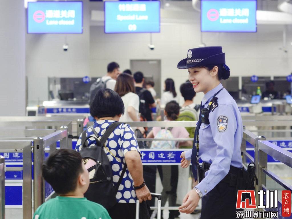 邊檢民警引導(dǎo)旅客快速通關(guān)。