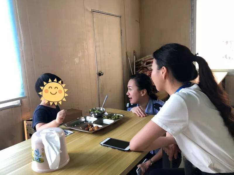 正值午飯時(shí)分,小男孩說餓了,想吃肉。郭飛教導(dǎo)員立即到飯?zhí)媒淮鷰煾堤酎c(diǎn)嫩的青菜,做點(diǎn)軟一些的肉給小男孩吃。并安排輔警王野、輔助人員黃以敏等人繼續(xù)陪同就餐和安撫。