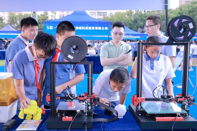 據(jù)了解,“禮贊共和國,智慧新生活”是今年全國科普日的主題。本次全國科普日寶安區(qū)活動(dòng)分為航天科技裝備、太空知識(shí)長(zhǎng)廊、氫能轉(zhuǎn)化實(shí)驗(yàn)、 VRAR活動(dòng)體驗(yàn)、寶安區(qū)科普教育基地介紹等五個(gè)版塊,呈現(xiàn)出航天科技與太空知識(shí)相結(jié)合的科普盛宴。除此之外,深圳市洲明科技股份有限公司帶來了智慧路燈及節(jié)能系統(tǒng)的介紹;深圳市愛能特科技有限公司的3D打印讓學(xué)生們大開眼界,想像的物品只要設(shè)計(jì)出來就能打??;韓端科技 (深圳)有限公司帶來的機(jī)器人舞蹈揮舞著國旗震撼了全場(chǎng)……操場(chǎng)上、實(shí)驗(yàn)室里處處散發(fā)出著科技的魅力。