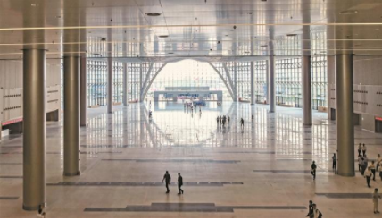 深圳國際會展中心嚴把質(zhì)量關(guān),僅3年就完工,創(chuàng)造了會展中心建設(shè)的“深圳速度”。圖為北登錄大廳。