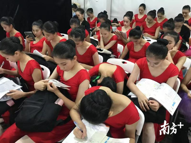 在晚會的另一個彩排候場點,36名來自深圳高級中學舞蹈團的參演學生在彩排和演出間隙仍然抓緊學習。深圳高級中學舞蹈團老師高潔說,這是舞團候場的常態(tài),“為了不耽誤學習,經常得抓緊間隙進行學習?!?/p>