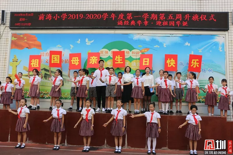 見圳客戶端、深圳新聞網(wǎng)2019年9月30日訊(見圳客戶端、深圳新聞網(wǎng)記者 陳彬 通訊員 羅其潔 潘志高)為慶祝中華人民共和國成立70周年,加強(qiáng)愛國主義教育,踐行社會主義核心價值觀,前海小學(xué)通過舉行愛國教育三部曲,祝愿偉大的祖國繁榮昌盛。