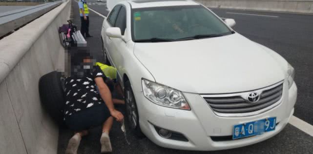 10月5日下午4點多,珠海交警郭警官開著警車在珠三角環(huán)線高速巡邏時,看到有一輛粵AQ××9J號白色豐田小車??吭趹?yīng)急車道上,打著雙閃。郭警官立即上前詢問情況,原來小車剛上高速沒多久就爆胎了,司機(jī)深知在高速停下來很危險,急得團(tuán)團(tuán)轉(zhuǎn),天還下起了小雨。