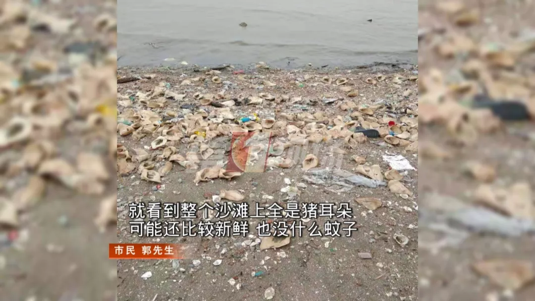 市民郭先生說,前兩天傍晚,他帶孩子到這里時(shí),就已經(jīng)發(fā)現(xiàn)了這一幕??沙^48小時(shí)了,海灘上的豬耳朵仍沒有得到清理。