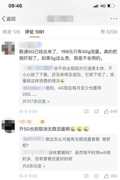 5G開(kāi)啟預(yù)約后,網(wǎng)友也議論紛紛。有網(wǎng)友稱(chēng):聽(tīng)說(shuō)聯(lián)通5G已經(jīng)出來(lái)了,199元只有40GB流量,真的把我嚇到了,如果5G這么貴,我是不會(huì)用的。