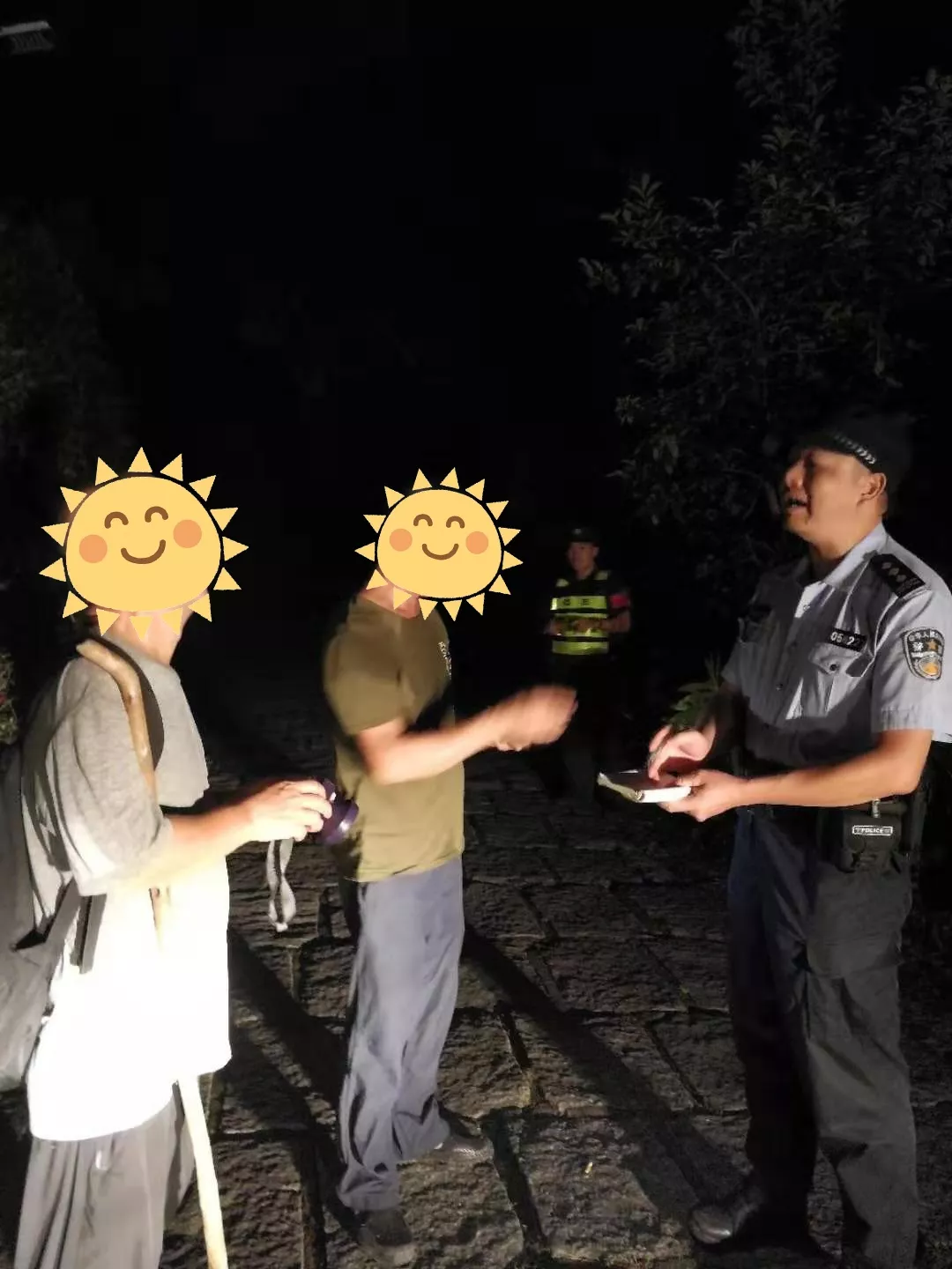 長達六小時的救援行動中,這位50多歲的老民警,一直在摸黑爬山尋找走失驢友。在救援隊認為報警人沒有特別危險、健康還沒有問題、能自行下山的情況下,年過半百的孔祥明不舍不棄,多方找尋救援力量,一刻也不曾停歇,終于找到走失驢友。