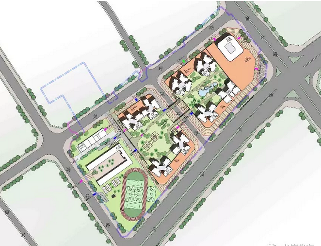 其中住宅210360平方米(含公共租賃住房26537平方米),商業(yè)、辦公及旅館業(yè)建筑67000平方米(含母嬰室130平方米),公共配套設施11880平方米(含9班幼兒園2400平方米、占地2950平方米,公交首末站2500平方米,社區(qū)健康服務中心1000平方米,社區(qū)老年人日間照料中心750平方米,文化活動室1000平方米,社區(qū)管理用房300平方米,社區(qū)警務室50平方米,便民服務站400平方米,郵政所100平方米,小型垃圾轉運站150平方米,再生資源回收站60平方米,公共廁所60平方米,環(huán)衛(wèi)工人作息房10平方米,公共充電站700平方米,黨群服務中心650平方米,社區(qū)級公共配套用房1750平方米),另配建社區(qū)體育活動場地占地面積3000平方米,移交27班九年一貫制學校用地面積13056平方米。