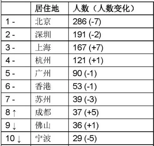 在富豪居住地分布榜單中