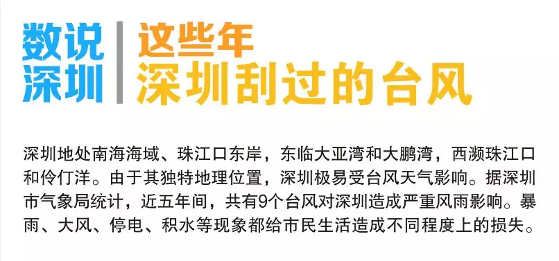 深圳地處南海海域、珠江口東岸,東臨大亞灣和大鵬灣,西瀕珠江口和伶仃洋。由于其獨(dú)特地理位置,深圳極易受臺(tái)風(fēng)天氣影響。臺(tái)風(fēng)帶來(lái)的暴雨、大風(fēng)、停電、積水等現(xiàn)象都給市民生活造成不同程度上的損失。