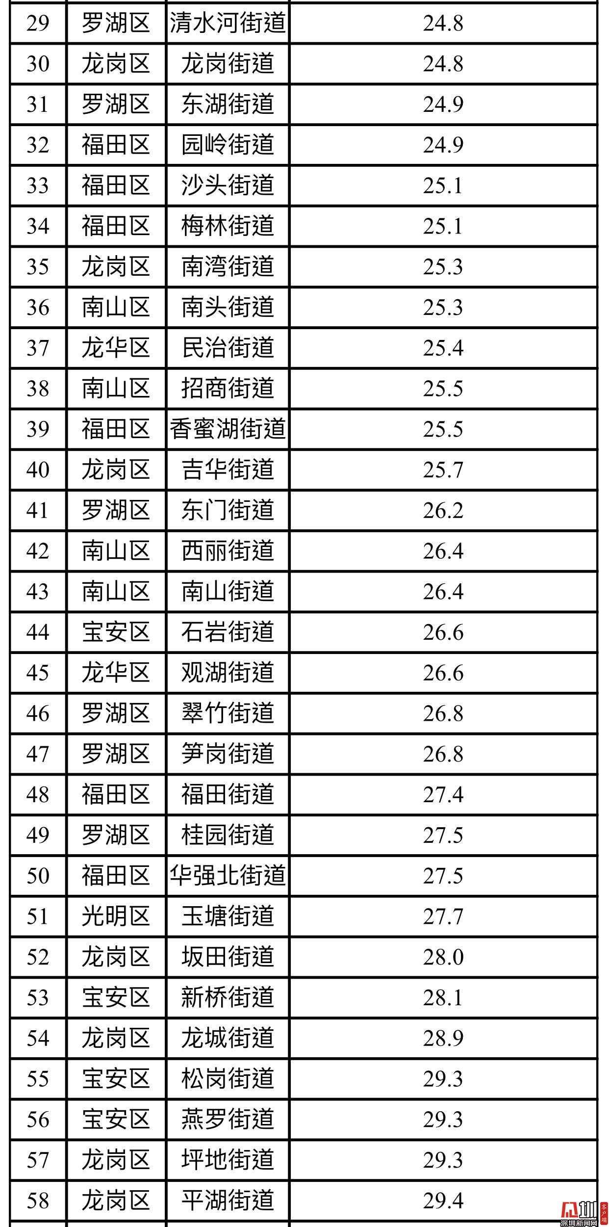 此外,各區(qū)PM2.5平均濃度在20.2-31.0微克/立方米之間,濃度較低的有鹽田、大鵬、坪山,濃度較高的有光明、寶安和龍華。