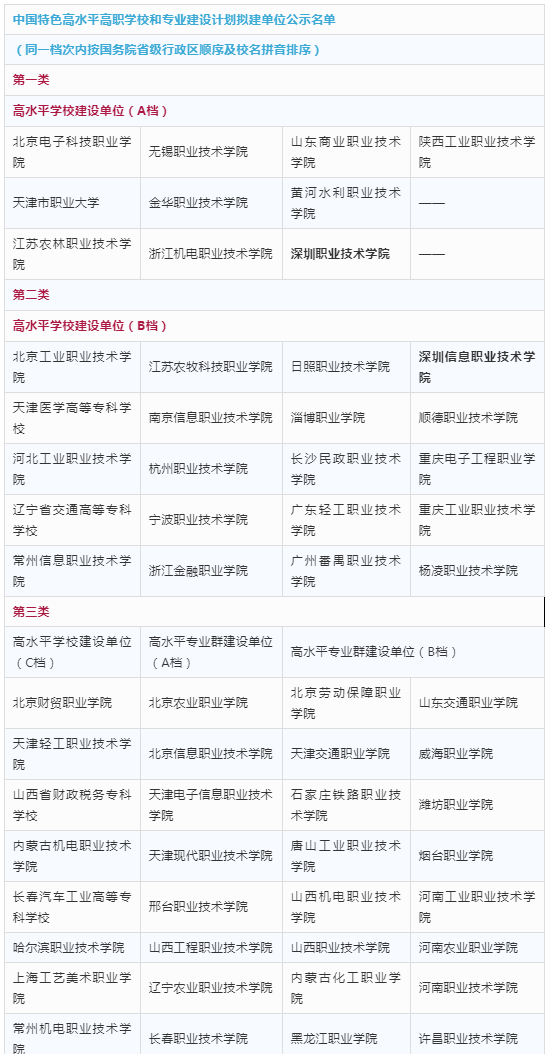 今天上午,教育部和財政部正式發(fā)布《關(guān)于中國特色高水平高職學(xué)校和專業(yè)建設(shè)計劃擬建單位的公示》,經(jīng)高職學(xué)校自愿申報,省級教育部門、財政部門審核推薦,中國特色高水平高職學(xué)校和專業(yè)建設(shè)計劃項目建設(shè)咨詢專家委員會評審,教育部、財政部審定,擬立項中國特色高水平高職學(xué)校和專業(yè)建設(shè)計劃建設(shè)單位197個(簡稱“雙高計劃”),現(xiàn)予公示。公示期7天(2019年10月25日—10月31日)。