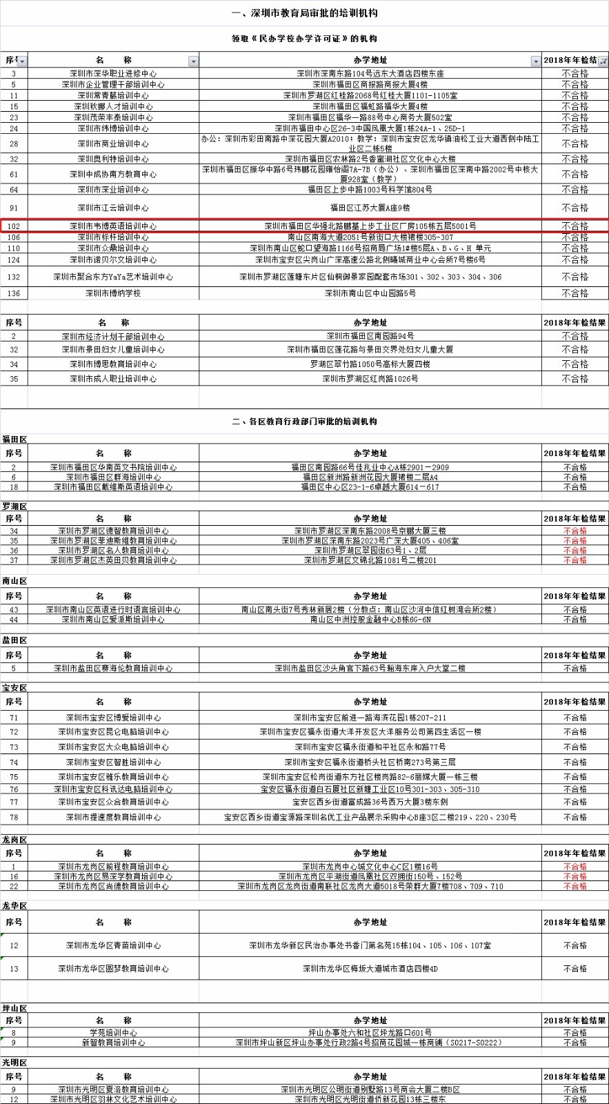 10月25日,深圳市教育局在其官網(wǎng)發(fā)布了《深圳市教育培訓(xùn)機(jī)構(gòu)年審信息公告》,為市民選擇培訓(xùn)機(jī)構(gòu)提供參考。晶報(bào)APP梳理后發(fā)現(xiàn),48家培訓(xùn)機(jī)構(gòu)2018年年檢結(jié)果被評(píng)定為不合格。