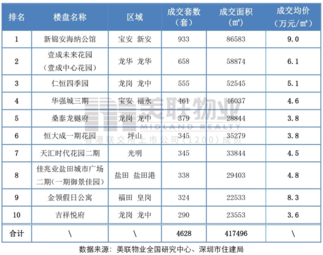 在第三季度新房成交TOP10中,寶安新安片區(qū)的新錦安海納公館以933套/86583㎡的成交量榮登全市榜首。值得注意的是,鹽田港片區(qū)的佳兆業(yè)鹽田城市廣場(chǎng)二期(備案名:一期御景佳園)和福田皇崗片區(qū)的金領(lǐng)假日公寓兩個(gè)項(xiàng)目也成功入榜;而其余8個(gè)項(xiàng)目分布除占比較高的龍崗、寶安兩區(qū)之外,其余的龍華、坪山和光明分別比較平均,而且均價(jià)基本多處在4萬(wàn)元-6萬(wàn)元/㎡區(qū)間。
