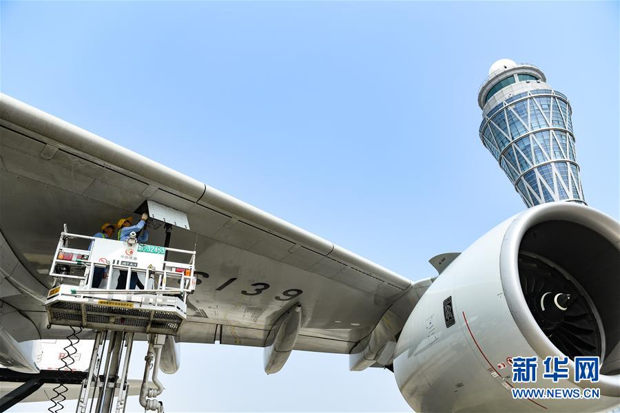 10月27日,工作人員在深圳機(jī)場為南方航空空中客車A380客機(jī)加油。當(dāng)日下午,由全球最大寬體客機(jī)——空中客車A380執(zhí)飛的南航CZ3153次航班由深圳起飛前往北京,標(biāo)志著這款“空中巨無霸”機(jī)型重返深圳機(jī)場。南航曾在2014年5月開始啟用A380執(zhí)飛京深航線,后因動態(tài)運力調(diào)配停飛。新華社記者毛思倩攝
