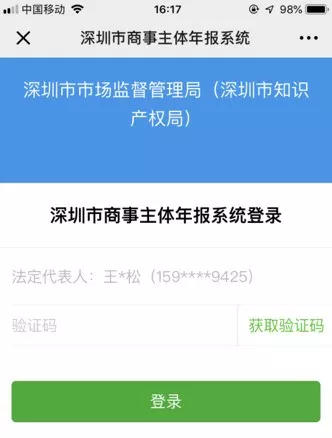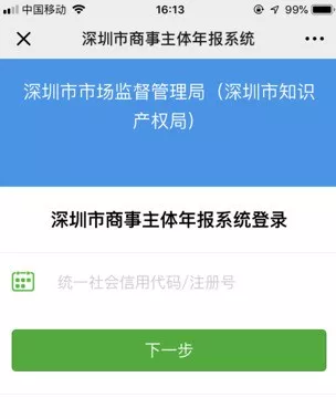 第一步:通過掃描新版營業(yè)執(zhí)照二維碼或進(jìn)入深圳市場監(jiān)管官微點擊“公眾服務(wù)”欄目下的“商事主體年報”進(jìn)入手機年報登錄界面。