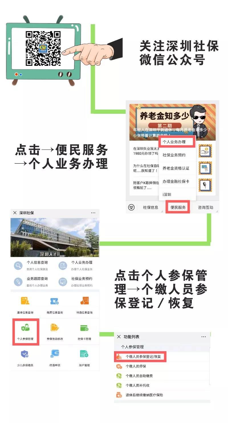 怎樣給自己參保繳費(fèi)?深戶靈活就業(yè)人員有以下幾種渠道為自己參保繳費(fèi):登錄深圳市社會(huì)保險(xiǎn)基金管理局官網(wǎng)(http://hrss.sz.gov.cn/szsi)上的個(gè)人網(wǎng)上服務(wù)系統(tǒng),自助辦理。關(guān)注“深圳社?!蔽⑿殴娞?hào),在微信上辦理。在社保自助終端機(jī)上辦理。前往社保機(jī)構(gòu)的辦事窗口辦理。