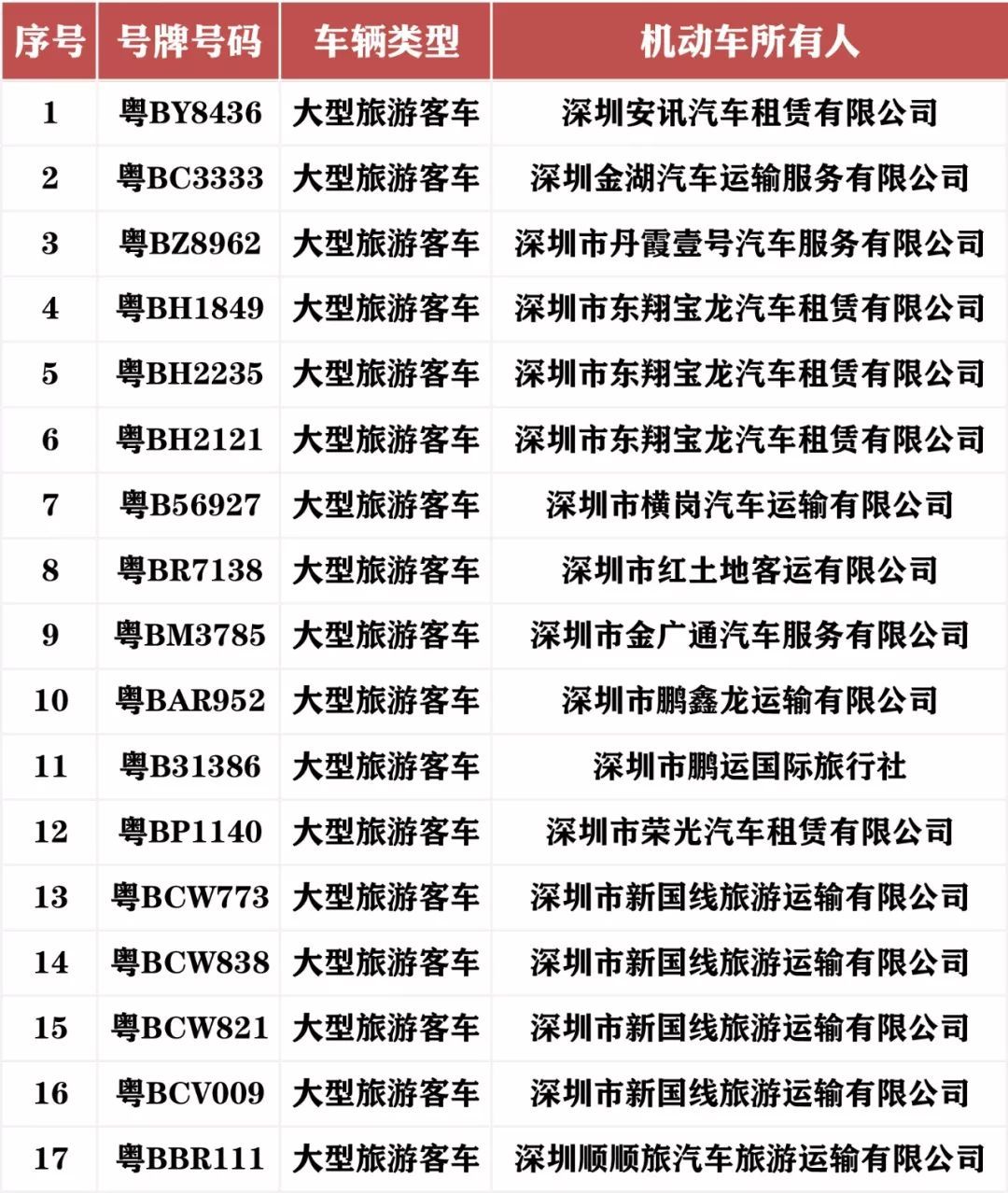 見(jiàn)圳客戶端·深圳新聞網(wǎng)2019年11月01日訊 部分企業(yè)、駕駛?cè)撕鲆暟踩珕?wèn)題,對(duì)名下“逾期客車(chē)”遲遲不處理,存在著重大安全隱患。10月31日,深圳車(chē)管所微信公號(hào)消息對(duì)重點(diǎn)隱患車(chē)輛點(diǎn)名曝光。