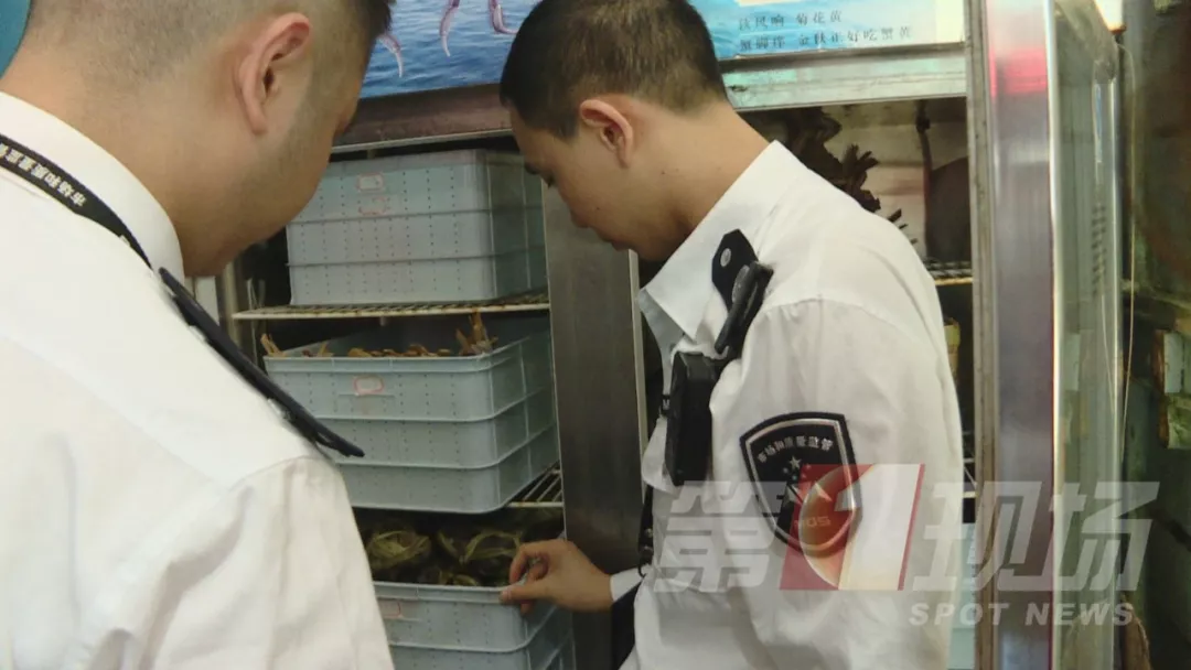執(zhí)法人員突擊檢查了羅芳水產(chǎn)批發(fā)市場(chǎng)內(nèi)幾間售賣膏蟹的商鋪,并沒有在店內(nèi)發(fā)現(xiàn)粗紅繩的蹤影,所有膏蟹以及大閘蟹所捆綁的繩子都是符合規(guī)格的,沒有吸水和壓秤的現(xiàn)象。