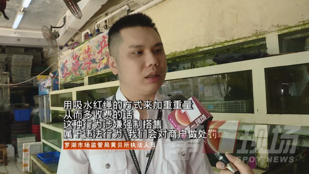 執(zhí)法人員表示,如果商鋪用粗紅繩來(lái)綁膏蟹,以這種方式騙秤,屬于違法行為。
