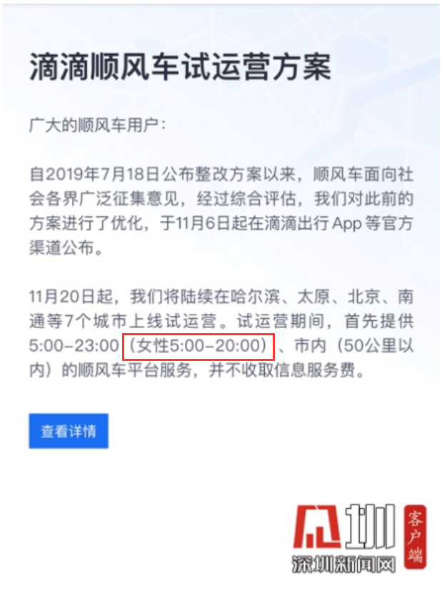 面對爭議,滴滴調(diào)整了:對所有順風車用戶提供服務的時間均改為5:00-20:00