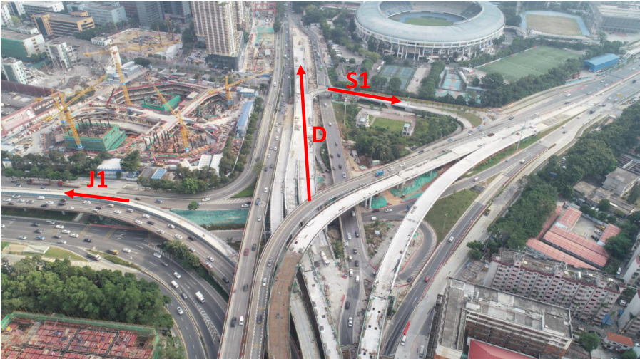 泥崗立交J1、D、S1匝道示意圖