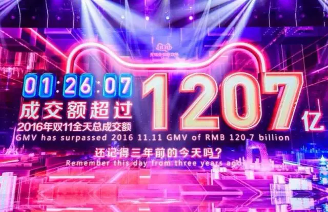 南方日?qǐng)?bào)2019年11月11日訊 11月11日剛過1小時(shí)26分07秒,天貓雙11實(shí)時(shí)成交額達(dá)1207億元,超越2016年全天。去年,天貓雙11成交額抵達(dá)1207億用時(shí)8小時(shí)8分52秒,這也意味著,今年成交破1207億速度比去年快了近7小時(shí)。