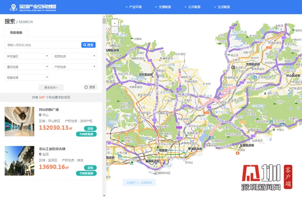 深圳產(chǎn)業(yè)空間地圖相當(dāng)直觀實用,哪個區(qū)有合適的產(chǎn)業(yè)用房房源一目了然。